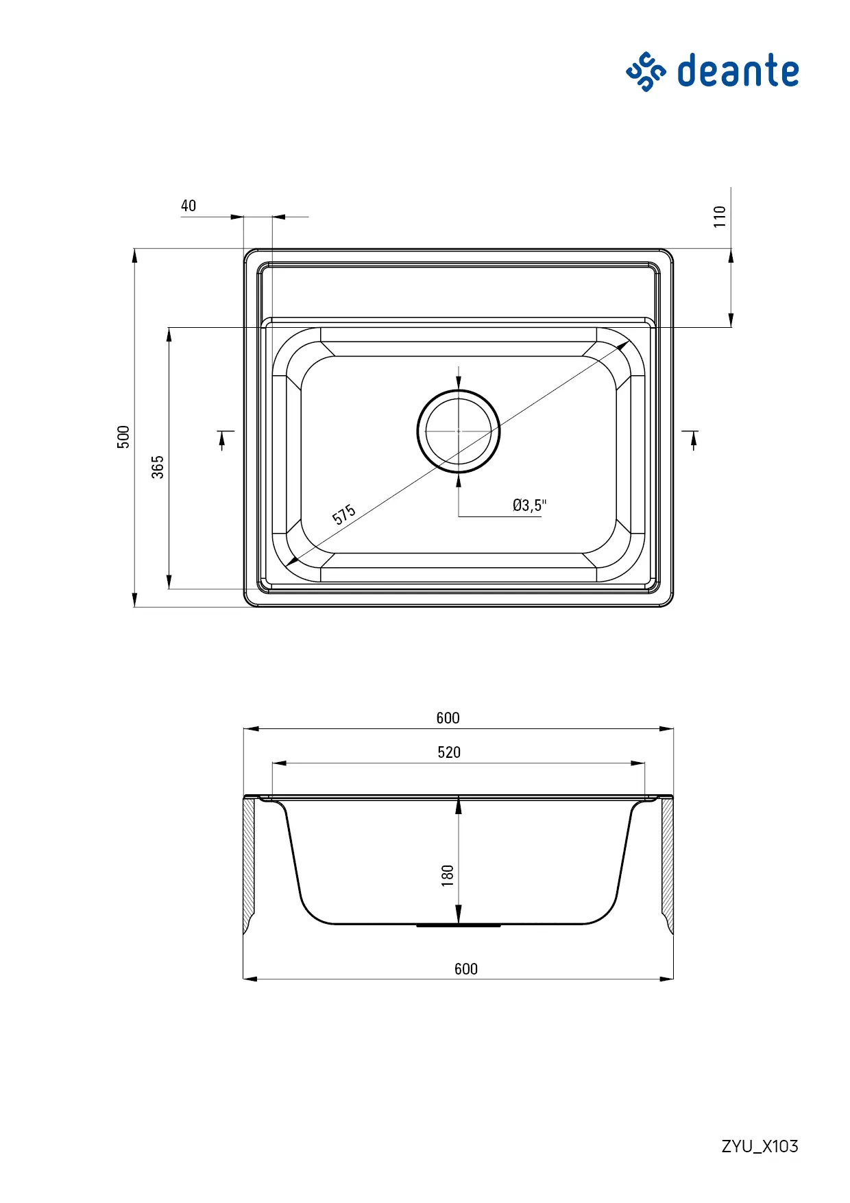 Deante - Zlewozmywak SOUL stalowy 1-komorowy 60x50 cm satyna