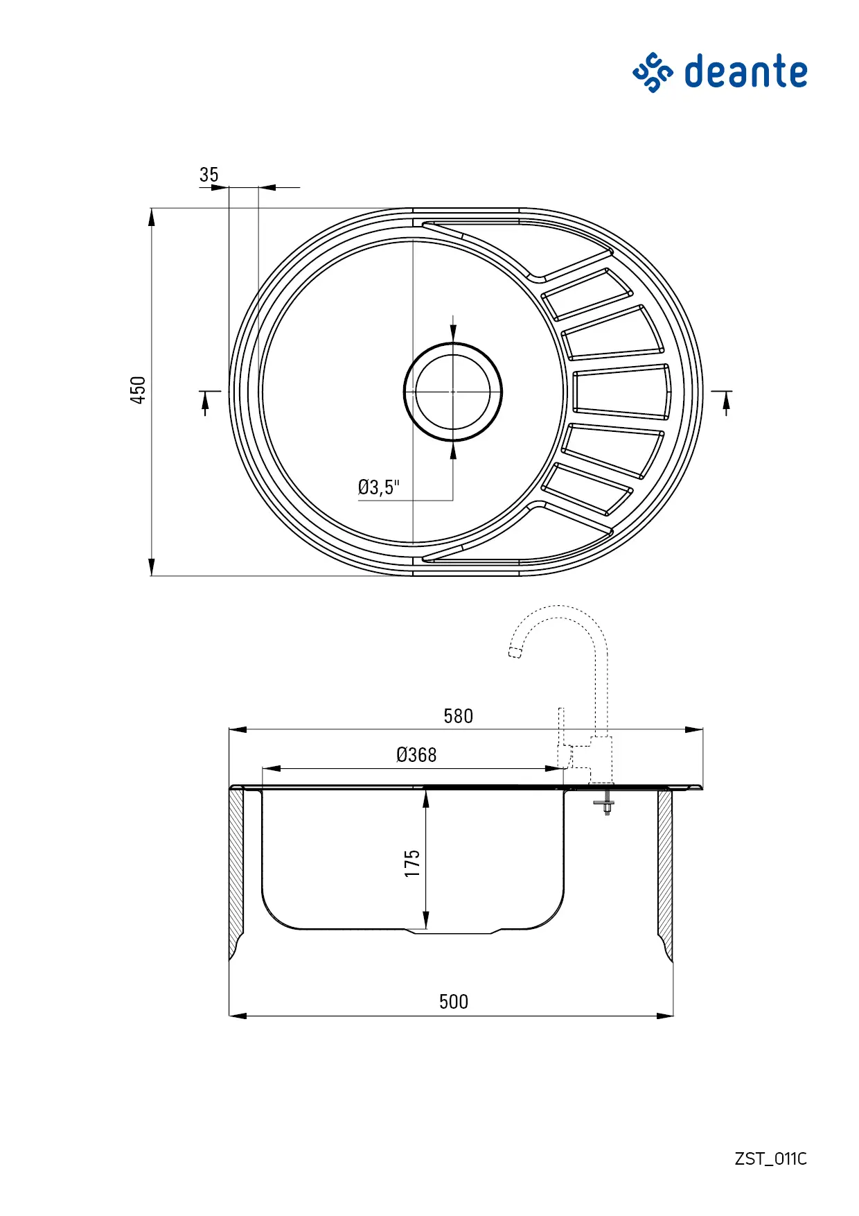 | Średnica odpływu | 3.5'' |