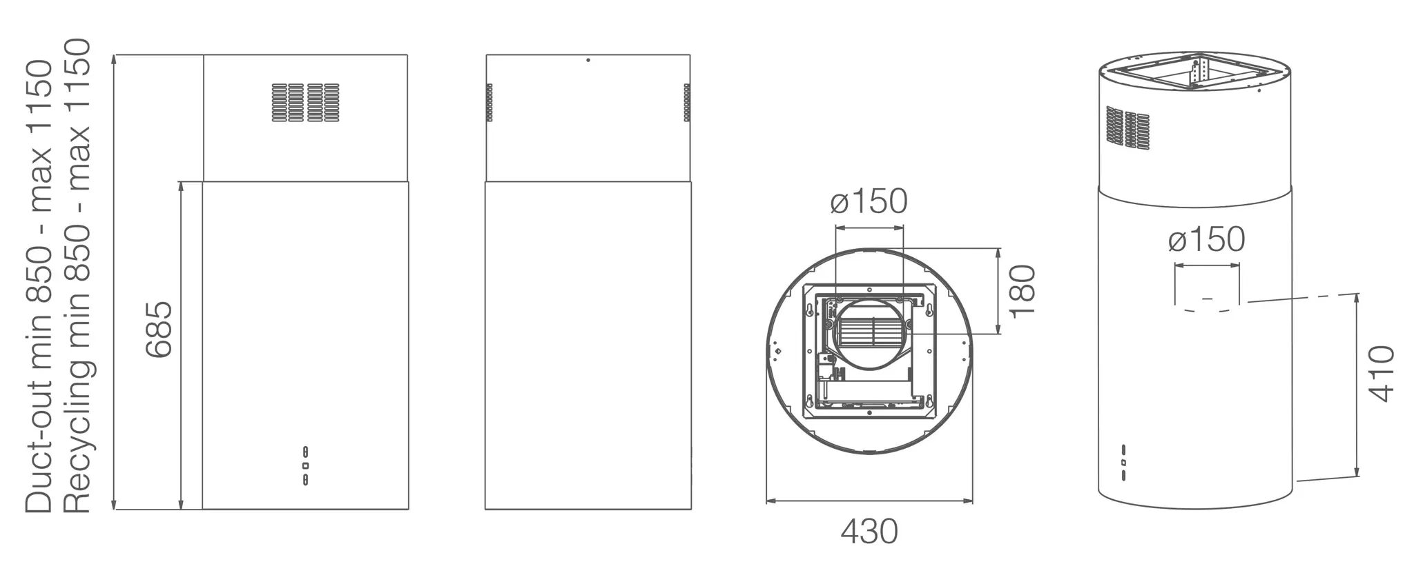Średnica wylotu powietrza150 mm
