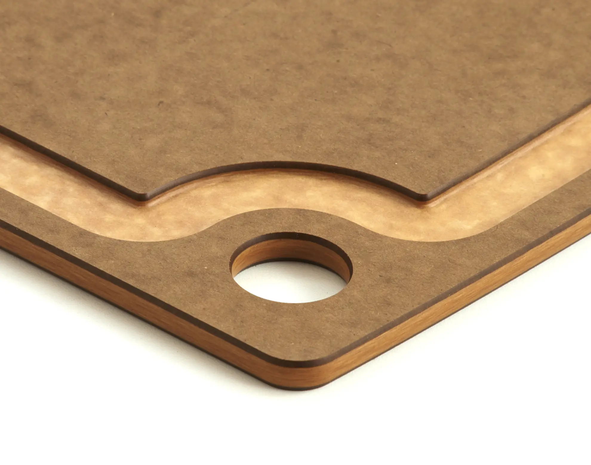 Materiał Richlite powoduje, że deski charakteryzują się wyjątkowa trwałością i jednocześnie są miłe w dotyku. Ich twardość jest podobna do drewna, są odporne na zabrudzenia oraz wysoka temperaturę (do 176ºC ). Gęsta struktura pozbawiona porów zapobiega przywieraniu bakterii do powierzchni deski. Łączy w sobie cechy drewna, szkła i plastiku.