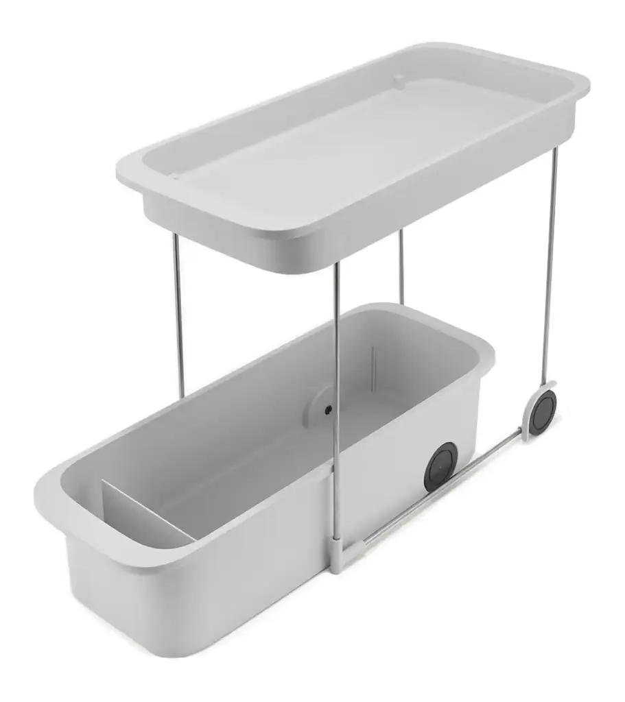 Prezentowany organizer do szafki z linii CupboardStore o wymiarach 20 x 47 x 33,5 cm (szer. x gł. x wys.) i szarym kolorze wykonany został z tworzywa sztucznego w minimum 50% pochodzącego z recyklingu. Idealnie sprawdzi się on do przechowywania przypraw, sosów, słoików, opakowań spożywczych lub akcesoriów kuchennych. Nada się również pod zlew do trzymania środków czystości. Organizer posiada funkcjonalną, 2-poziomową konstrukcję, która pomaga maksymalnie wykorzystać przestrzeń w szafkach. Ponadto oddzielne przegrody ułatwiają utrzymanie porządku i dobrej organizacji, a wygodne uchwyty oraz kółka umożliwiają bezproblemowe wysuwanie z szafki oraz zapewniają szybki dostęp do przechowywanych produktów. Produkt zaleca się myć ręcznie, a po czyszczeniu dokładnie osuszyć.