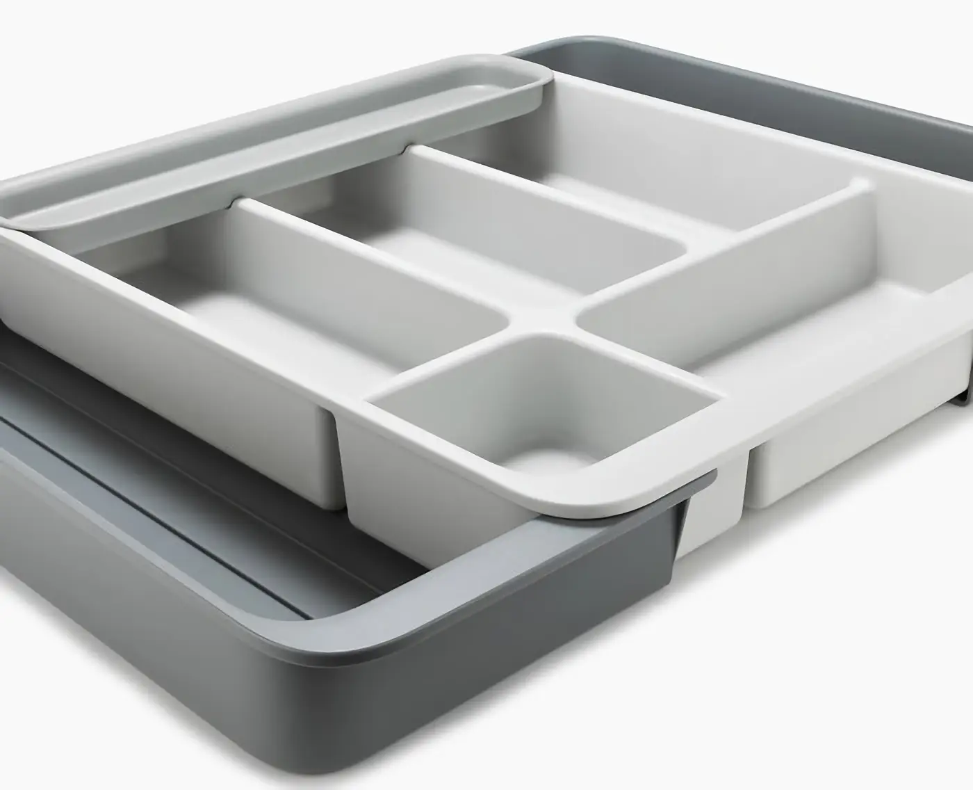 Organizery z kolekcji DrawerStore angielskiej marki Joseph Joseph pozwalają na wygodne przechowywanie sztućców, noży i akcesoriów kuchennych w szufladach wysuwanych, ułatwiając przy tym utrzymanie w nich porządku. Dodatkowo ich minimalistyczny, nowoczesny design wpasuje się w niemal każdy wystrój kuchni.
