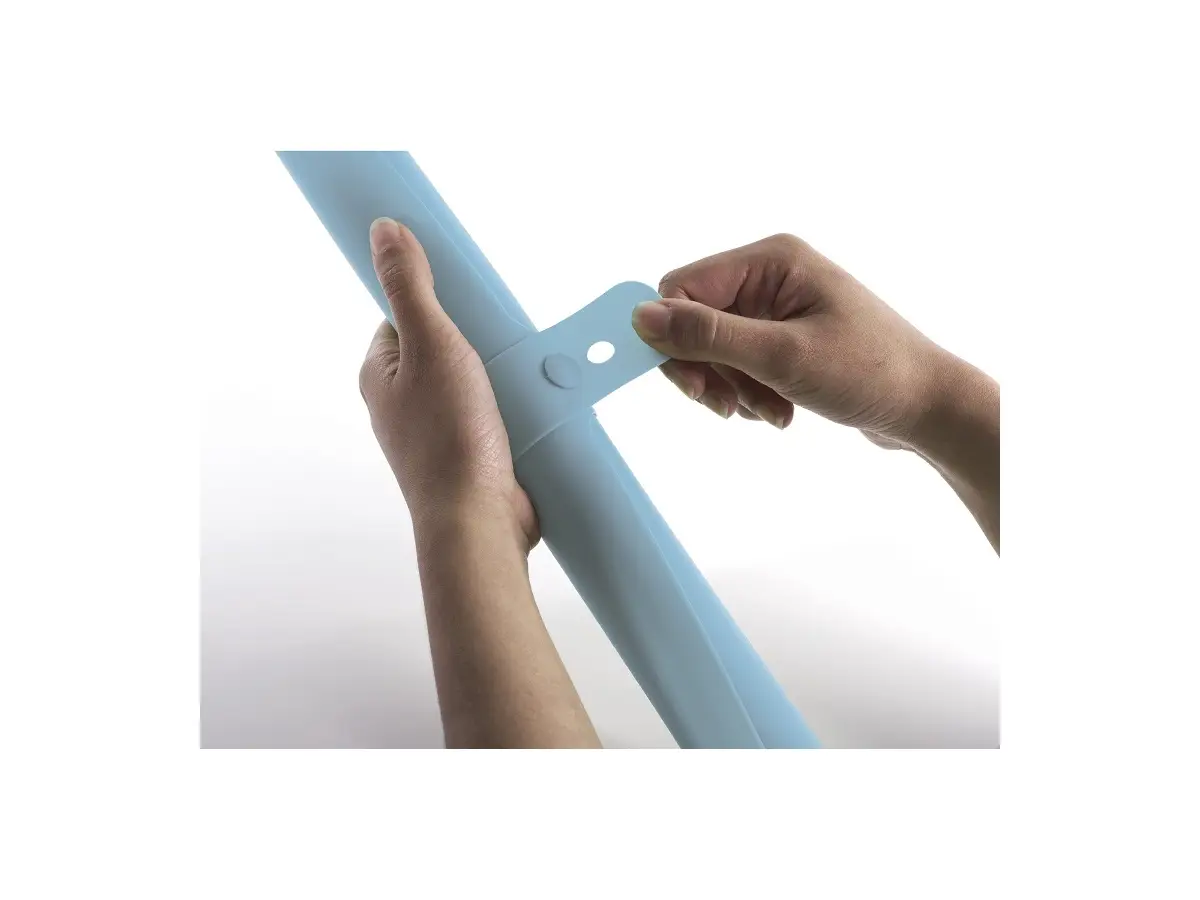 Ogromną zaletą jest silikonowy pasek, który pozwala spiąć matę, tak aby nie rozkładała się w szafce czy szufladzie.