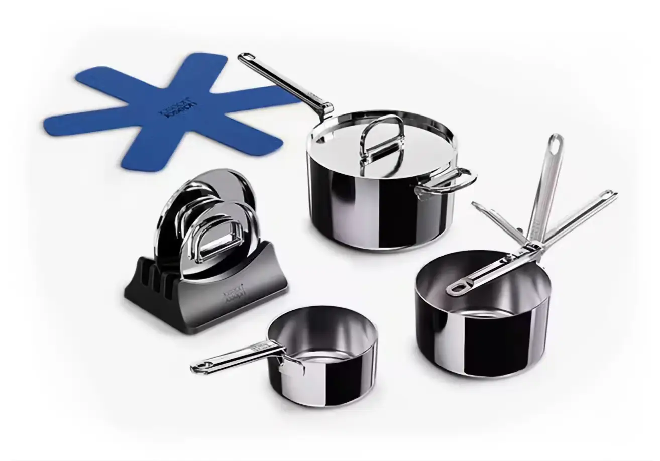 Joseph Joseph w swojej linii Space Steel oferuje wysokiej jakości naczynia wyróżniające się nowoczesnym designem i eleganckim, polerowanym wykończeniem w srebrnym kolorze. Nie tylko świetnie sprawdzą się one do przygotowywania różnych potraw, ale i nadadzą się do ich estetycznego serwowania.
