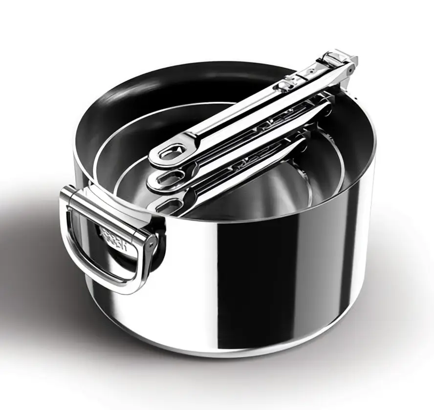 Prezentowany zestaw zawiera 3 rondle z pokrywkami (15 cm, 19 cm, 23 cm), stojak na pokrywki oraz 2 filcowe przekładki ochronne dla uniknięcia zarysowań podczas przechowywania. Idealnie dopełni wyposażenie kuchenne, łącząc elegancję z wyjątkową trwałością - korpusy naczyń wykonano z 3-warstwowej stali nierdzewnej. Naczynia świetnie sprawdzą się do codziennego gotowania, dzięki aluminiowym rdzeniom równomiernie rozprowadzając ciepło. Rondle wyposażono w innowacyjne, składane uchwyty (największy ma dodatkowy również składany uchwyt pomocniczy), które pozwalają zaoszczędzić do 50% miejsca podczas przechowywania w szafce lub szufladzie, co czyni je jeszcze bardziej praktycznymi w używaniu. Zestaw jest kompatybilny ze wszystkimi rodzajami kuchenek (gazowymi, elektrycznymi, ceramicznymi i indukcyjnymi). Nadaje się do piekarnika - jest odporny na temperaturę do 232°C (rondle i pokrywki). Mimo przystosowania naczyń i pokrywek do mycia w zmywarce, dla dłuższej trwałości zaleca się myć wszystkie elementy ręcznie. Stojak i przekładki w razie potrzeby należy przecierać wilgotną ściereczką. Dodatkowo aby uniknąć zarysowań zaleca się nie używać metalowych przyborów kuchennych.