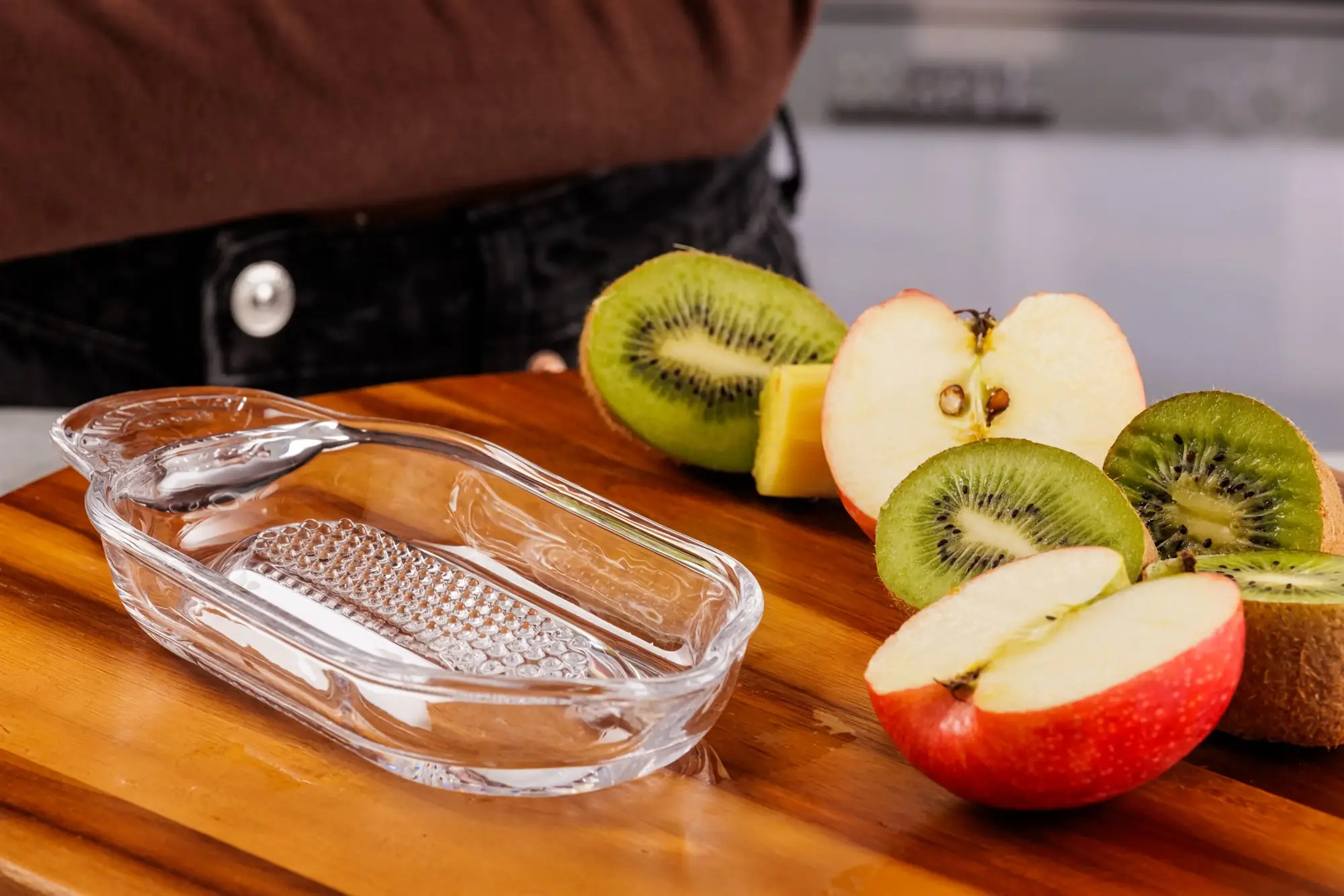 Prezentowana tarka o wymiarach 20,5 x 10 x 3 cm (dł. x szer. x wys.) to wszechstronne narzędzie do przygotowywania żywności, które może być używane do tarcia czosnku, a także do przecierania owoców takich jak jabłka, gruszki i kiwi czy warzyw. Jej owalny kształt pozwala na ruchy tarki tam i z powrotem. Praktyczne ostre ząbki ułatwiają tarcie żywności i tworzenie pożądanej pulpy, korytko zbiera naturalne soki, a uchwyt umożliwia wygodne trzymanie i przelewanie. Tarka jest łatwa w czyszczeniu - nadaje się do mycia w zmywarce.