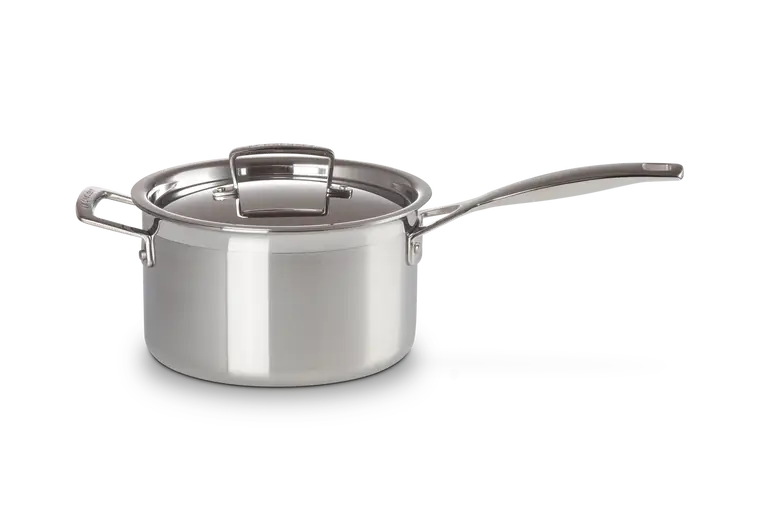 3-Ply naczynie ze stali nierdzewnej nadaje się do wszystkich płyt kuchennych i tradycyjnego piekarnika, jest bezpieczne w temperaturze do 260°C. Nie nadaje się do kuchenek mikrofalowych.