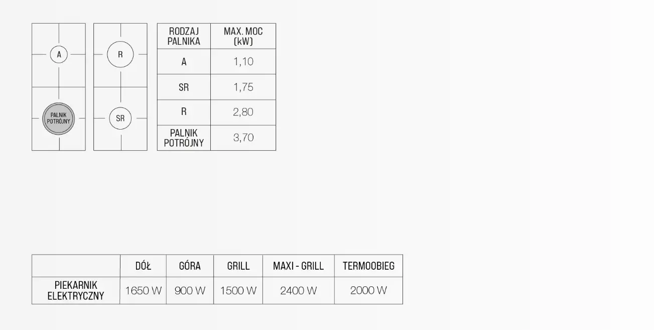 | Typ grzewczy: | Gazowa (płyta grzewcza) Elektryczny (piekarnik) |