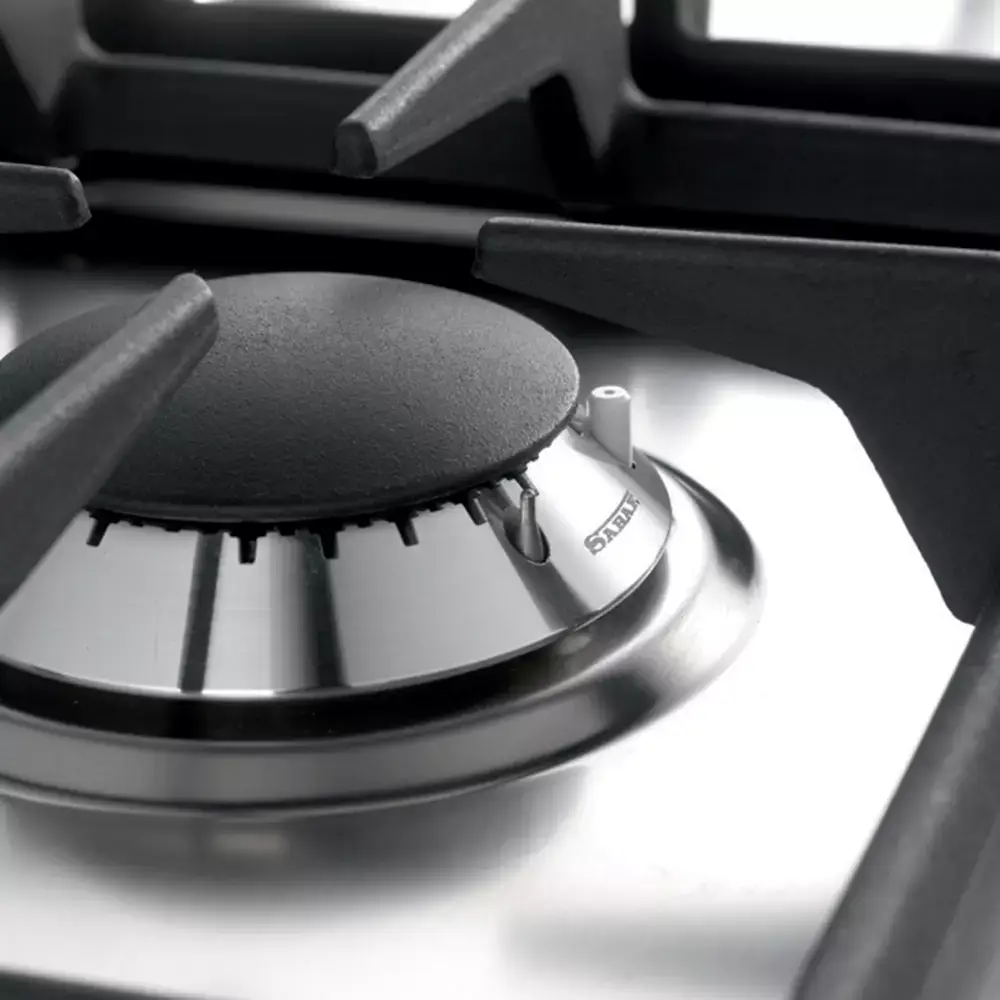 4 palniki gazowe zaworowe Seria III, w tym 1 palnik potrójny o wysokiej mocy, idealny do bardzo szybkiego gotowania, zapewniający profesjonalne efekty poprzez całościowe grzanie od środka aż do brzegów garnków i patelni - nowe palniki Sabaf Serii III posiadają niezwykłe właściwości, dzięki którym nie mają sobie równych na świecie: wydajność na najwyższym poziomie oraz emisja obniżona do minimum