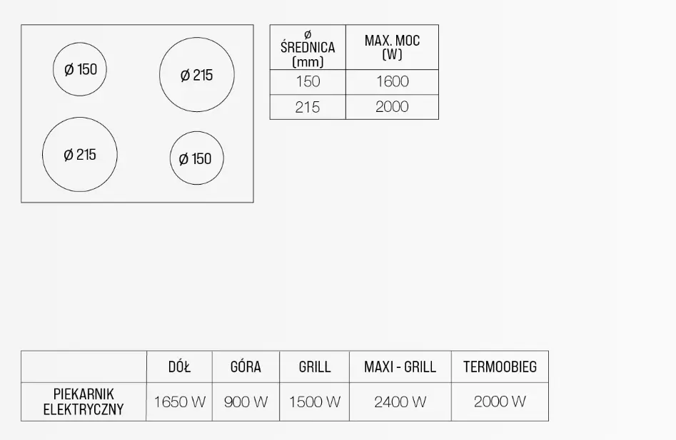 | Typ grzewczy: | Indukcja (płyta grzewcza) Elektryczny (piekarnik) |