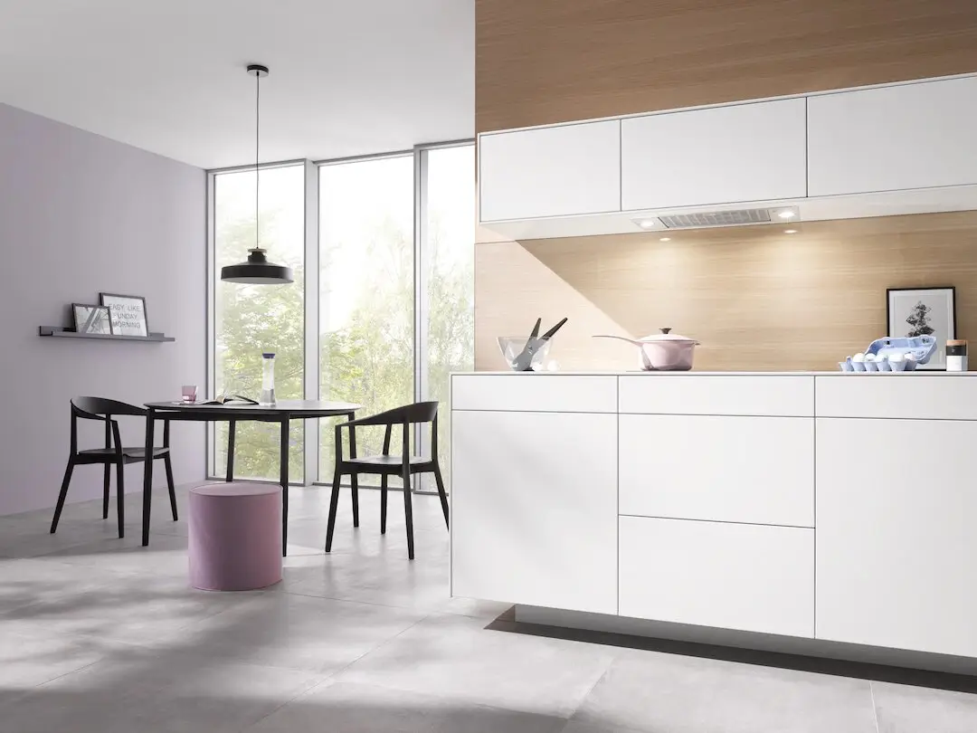 Okap kominowy Miele DA 2360 to doskonałe rozwiązanie dla tych, którzy cenią indywidualny wygląd kuchni oraz oszczędność miejsca. Dzięki pełnej integracji o szerokości 584 mm, ten okap wkomponuje się w aranżację kuchni, nadając jej niepowtarzalny charakter. Okap pasuje do wąskich szafek wiszących o głębokości od 30 cm. Wysoka wydajność na poziomie 600 m3/h, zwłaszcza w trybie Booster, gwarantuje skuteczną eliminację oparów i zapachów podczas gotowania, co zwiększa komfort pracy w kuchni. Efektywna filtracja oparta na 10-warstwowych stalowych filtrach tłuszczu zapewnia, że powietrze w kuchni jest czyste, a urządzenie łatwe do utrzymania w czystości dzięki bezpiecznej i łatwej do czyszczenia powłoce Miele CleanCover. Dodatkowo, oświetlenie LED nie tylko stanowi energooszczędne źródło światła, ale także podkreśla elegancję okapu, tworząc przyjemną atmosferę w kuchni. Przyciski do obsługi dodają wygody użytkowania, umożliwiając łatwą regulację parametrów jego pracy.