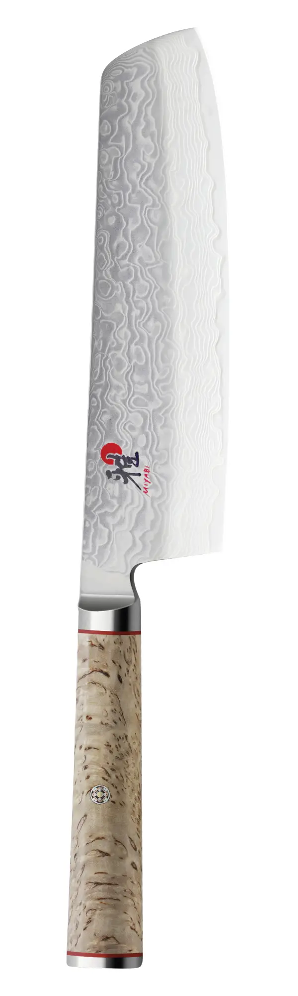 Przedstawiony nóż Nakiri od marki Miyabi jest najwyższej klasy dziełem sztuki kulinarnej. Za jakością wyglądu idzie również jakość wykonania noża Nakiri którego ostrze, jak i rękojeść zostały wykonany z najcenniejszych i najodporniejszych materiałów, które kształtują ich uderzający wygląd noża.