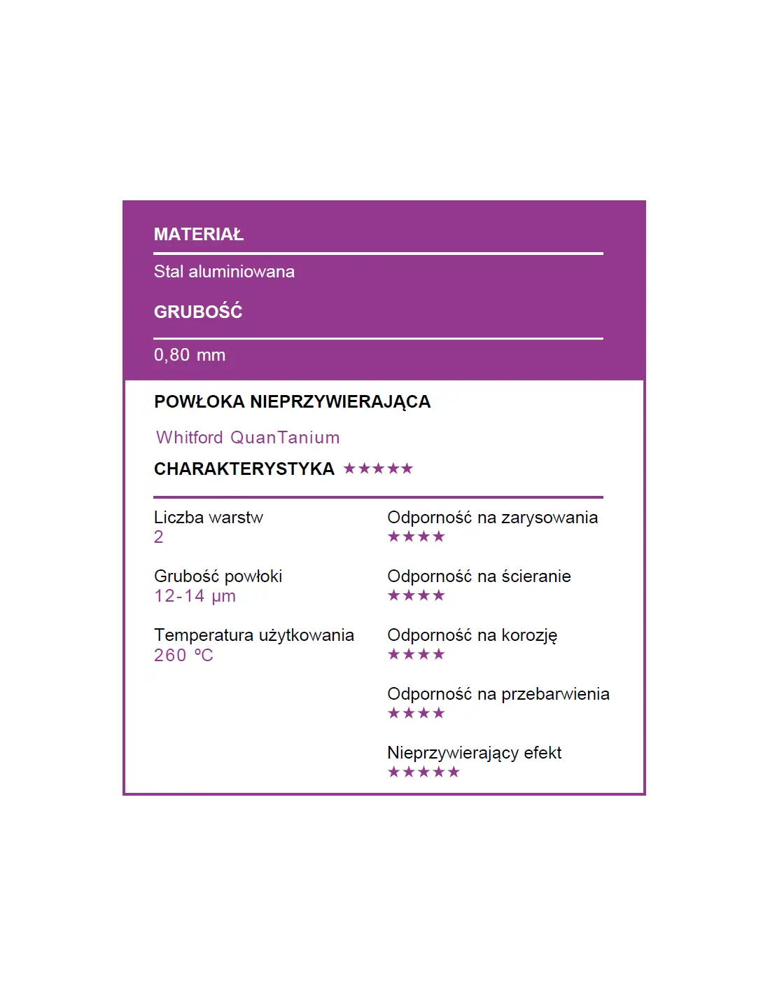 - forma wykonana ze stali aluminiowanej o grubości 0,8mm z powłoką nieprzywierającą Whitford Quan Tanium