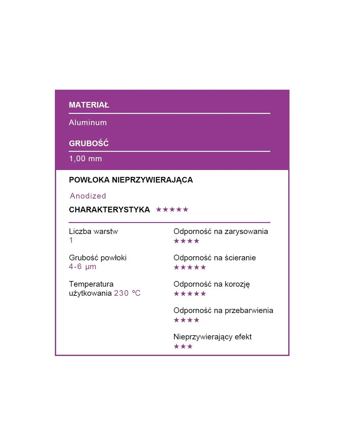 - wykonana z anodyzowanego aluminium o grubości 1,00 mm