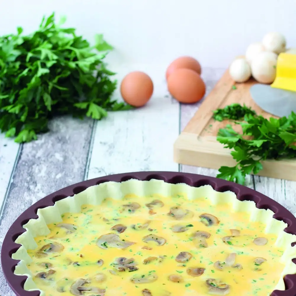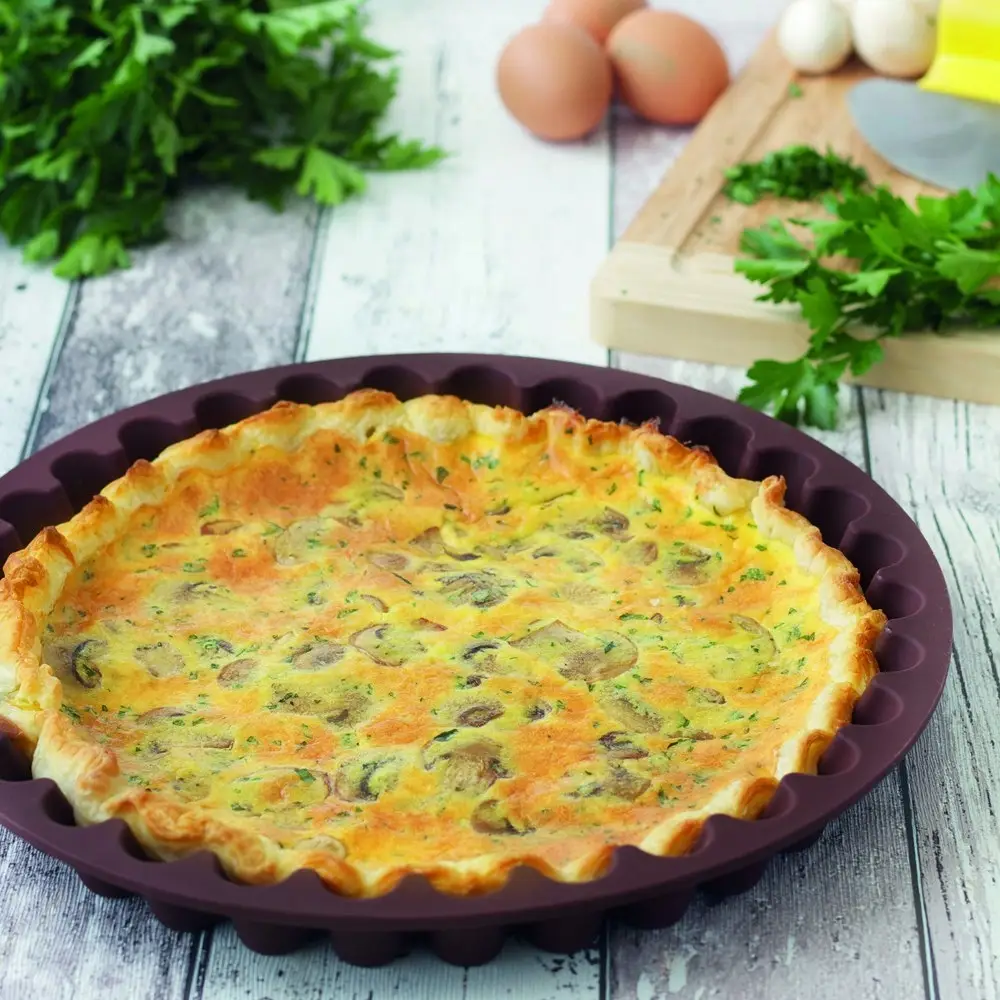Tradycyjna kształt, ale stworzona z silikonowego materiału. Oto forma do tarty Crostata, która umożliwi przygotowanie ciasta na każdą okazję. Materiał silikonowy nagrzewa się równomiernie, dzięki czemu ciasto równo wyrasta i nie przypala się. Tarta powstała z formy Crostata z pewnością będzie smakowała zaproszonym gościom. Produkt odporny jest na wysokie temperatury (+2800) oraz niskie temperatury (-400). Nadaje się do pieczenia w piekarniku. Można myć w zmywarce.