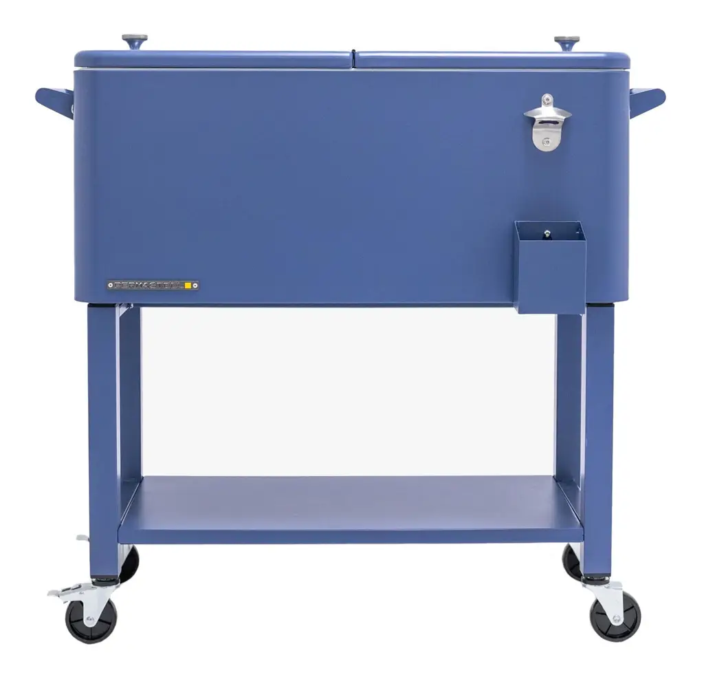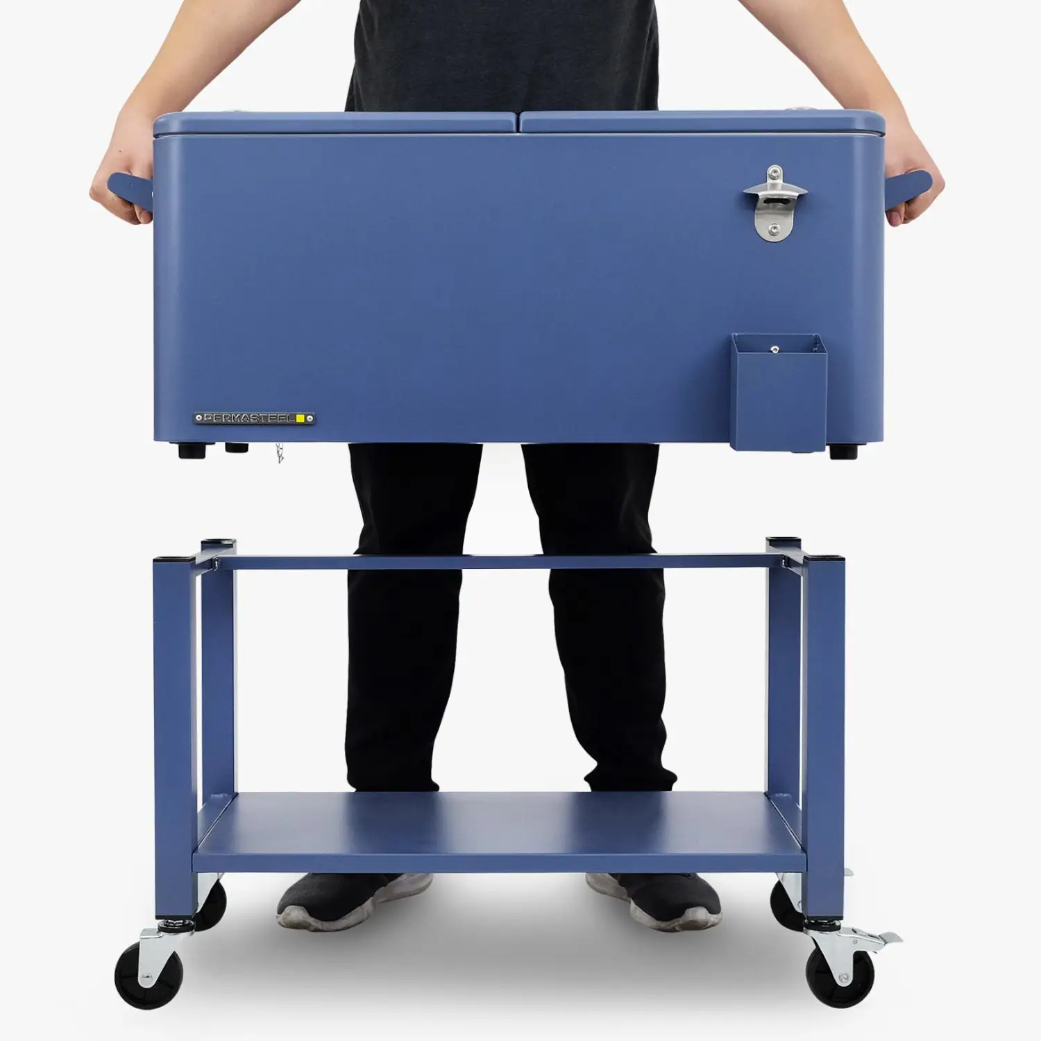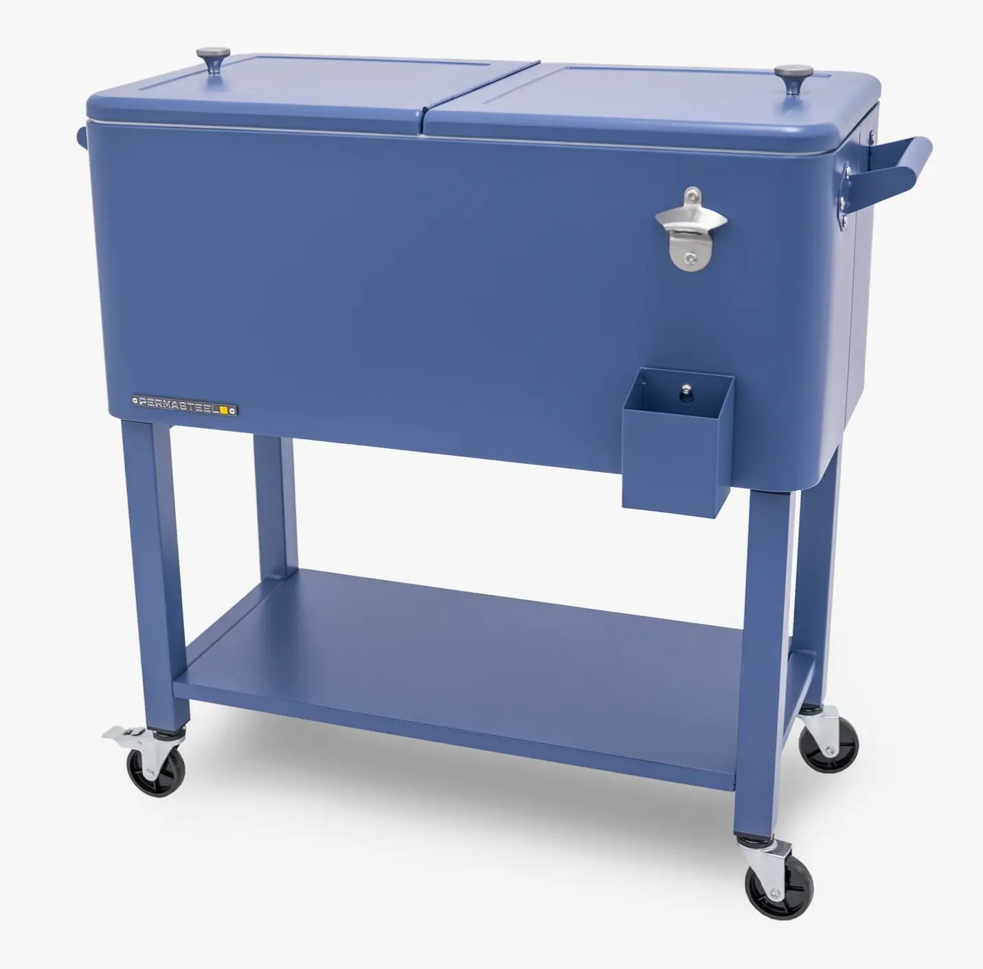Prezentowana lodówka ogrodowa PS-223 idealnie sprawdzi się podczas upalnych dni w plenerze i ogrodzie, dzięki pojemności 76 L mieszcząc puszki i butelki dla większego grona osób. Z zewnątrz wykonana została z lakierowanej proszkowo na niebieski kolor stali, a wewnątrz z tworzywa. Zapewniająca izolację, szczelnie wypełniająca przestrzeń między ściankami pianka wtryskowa utrzymuje napoje w zimnie na dłużej. Produkt wyposażono w zintegrowany otwieracz do butelek z pojemnikiem na kapsle do ich łatwego otwierania. Dwuczęściowa pokrywa ułatwia dostęp do wnętrza chłodziarki, a kranik odpływowy pozwala na wygodne opróżnianie lodówki z wody po użytkowaniu lub czyszczeniu. Praktyczne uchwyty oraz stabilna podstawa z półką i skrętnymi kółkami umożliwiają z kolei bezproblemowe przemieszczanie lodówki. Kółka posiadają przy tym hamulec gwarantujący bezpieczeństwo podczas postoju. Dodatkowo podstawę można łatwo odłączyć by używać lodówki oddzielnie.