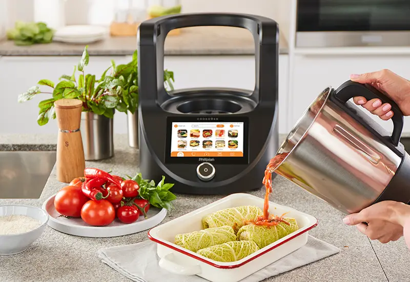 Cookover Philipiak to inteligentne urządzenie, które zastępuje kilkanaście urządzeń i akcesoriów do przygotowywania i gotowania posiłków zajmując niewiele miejsca w kuchni. Nowoczesna technologia pomoże w przygotowaniu dań głównych, zup, ciast, pieczywa, sosów, koktajli, soków, potraw dla dzieci i wielu innych.