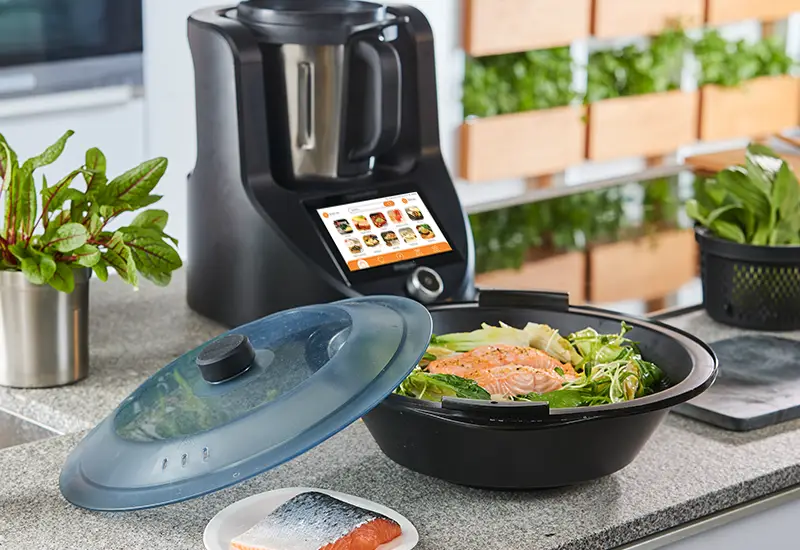 Teraz przygotujesz posiłki nawet bez znajomości sztuki kulinarnej. Każdy znajdzie coś dla siebie: osoby początkujące wiedzę, zaawansowane inspiracje a profesjonaliści wsparcie. Wszystko co w kuchni było trudne staje się dziecinnie proste. Innowacyjne akcesoria i wygodny kielich będą ułatwiać pracę w kuchni tak, aby stała się ona jeszcze większą przyjemnością dla użytkowników. Urządzenie przeprowadzi Cię powoli krok po kroku przez proste jak również bardziej skomplikowane receptury. Gotowanie nie było jeszcze tak proste!