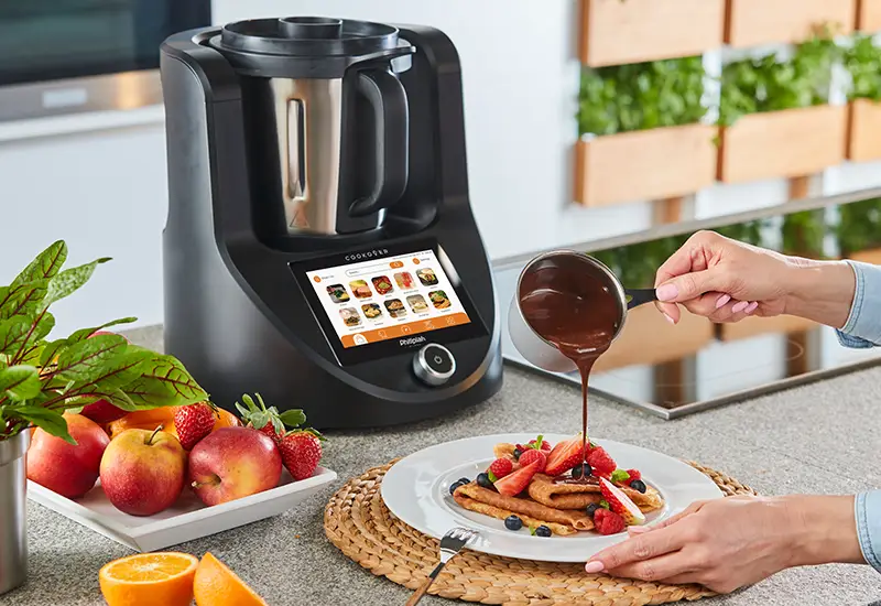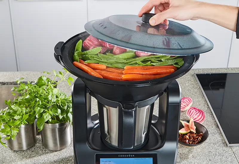 Cookover to urządzenie, które zastępuje kilkanaście urządzeń i akcesoriów do przygotowywania i gotowania smacznych posiłków zajmując niewiele miejsca w kuchni. Waży, miesza, miksuje, rozdrabnia, ubija, wyrabia ciasto, emulguje, gotuje, smaży, gotuje na parze, sieka, mieli, blenduje, dusi, podgrzewa oraz wolno gotuje metodą sous-vide. Wszystko w jednym urządzeniu. Dodatkowo to elektroniczna książka kucharska, w której odnajdziesz setki przepisów. Dzięki czytelnemu ekranowi LCD i intuicyjnej obsłudze, nie musisz już sięgać po tradycyjne papierowe wydania.