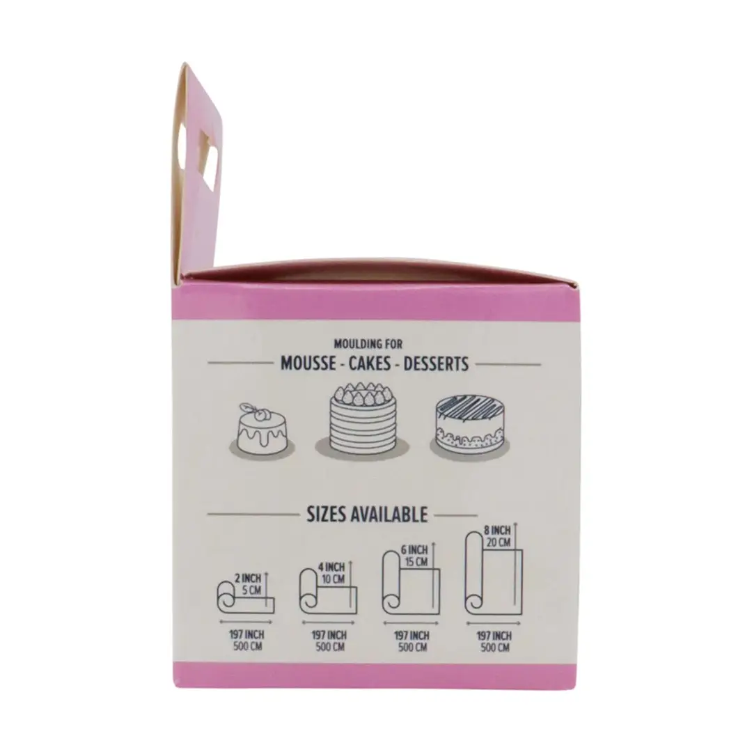Folia octanowa to praktyczne akcesorium cukiernicze, które znajduje szerokie zastosowanie przy przygotowywaniu różnego rodzaju deserów, zwłaszcza ciast warstwowych, musowych i serników na zimno. Prezentowana rolka ma długość 5 metrów i szerokość 10 centymetrów, co pozwala na dopasowanie jej do różnych form i rozmiarów wypieków.