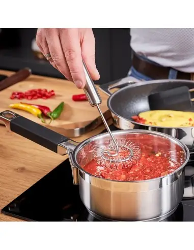 - Ta sprytna trzepaczka dociera do wszystkich obszarów garnka, tj. dna, a także narożników między dnem garnka a ścianą