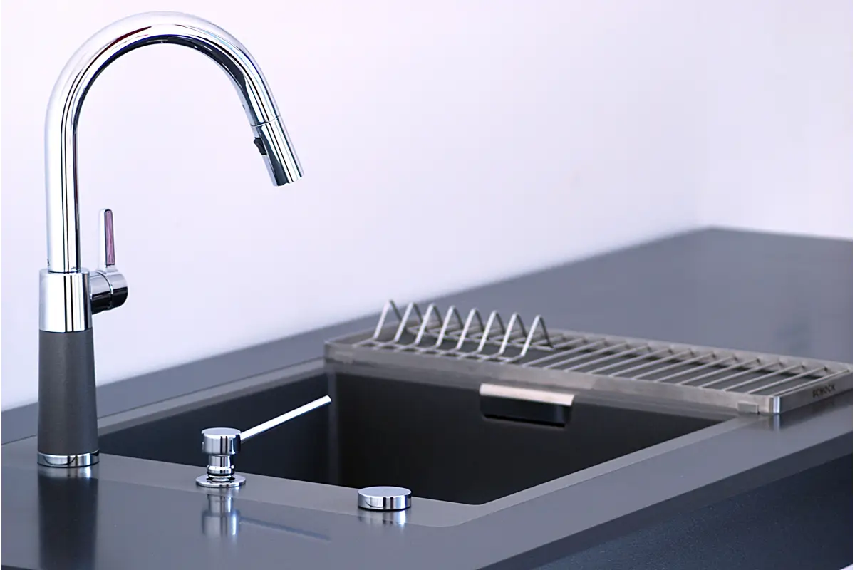 Praktyczna i stylowa bateria SC520.120 marki schock to świetny wybór do kuchni. Dostępna jest w kilku kolorach, pasujących do zlewów z CRISTADURU. Bateria posiada wyciąganą wylewkę oraz funkcję prysznica. Jest wysoka, dzięki czemu łatwo napełnisz lub umyjesz wysokie naczynia.