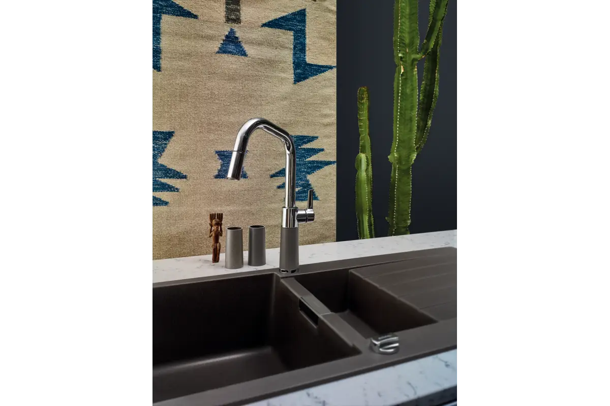 Bateria kuchenna SC530.120 marki schock wyróżnia się niezwykle eleganckim designem. Wylewka w kształcie litery "U" oraz połączenie chromu z kolorem świetnie prezentuje się w każdej kuchni. Ponadto, bateria ta jest niezwykle funkcjonalna - posiada wyciąganą wylewkę oraz funkcję zmiany strumienia wody.