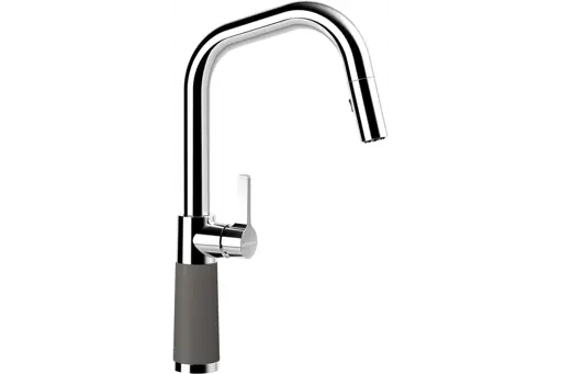 Bateria kuchenna Cosmo marki Schock łączy w sobie klasyczny design i nowoczesne funkcje. Ten model posiada wyciąganą wylewkę, a także możliwość zmiany strumienia wody na prysznic za pomocą jednego przycisku. Dzięki temu z łatwością umyjesz zlew, opłukasz warzywa i owoce bez pryskającej wody, a także napełnisz wysokie naczynia wodą.