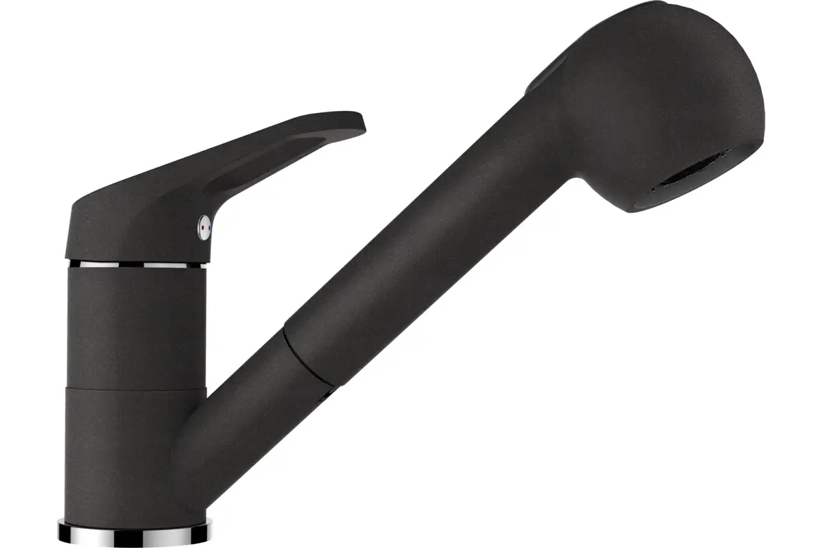 Bateria kuchenna Cosmo marki Schock łączy w sobie klasyczny design i nowoczesne funkcje. Ten model posiada wyciąganą wylewkę, a także możliwość zmiany strumienia wody na prysznic za pomocą jednego przycisku. Dzięki temu z łatwością umyjesz zlew, opłukasz warzywa i owoce bez pryskającej wody, a także napełnisz wysokie naczynia wodą.