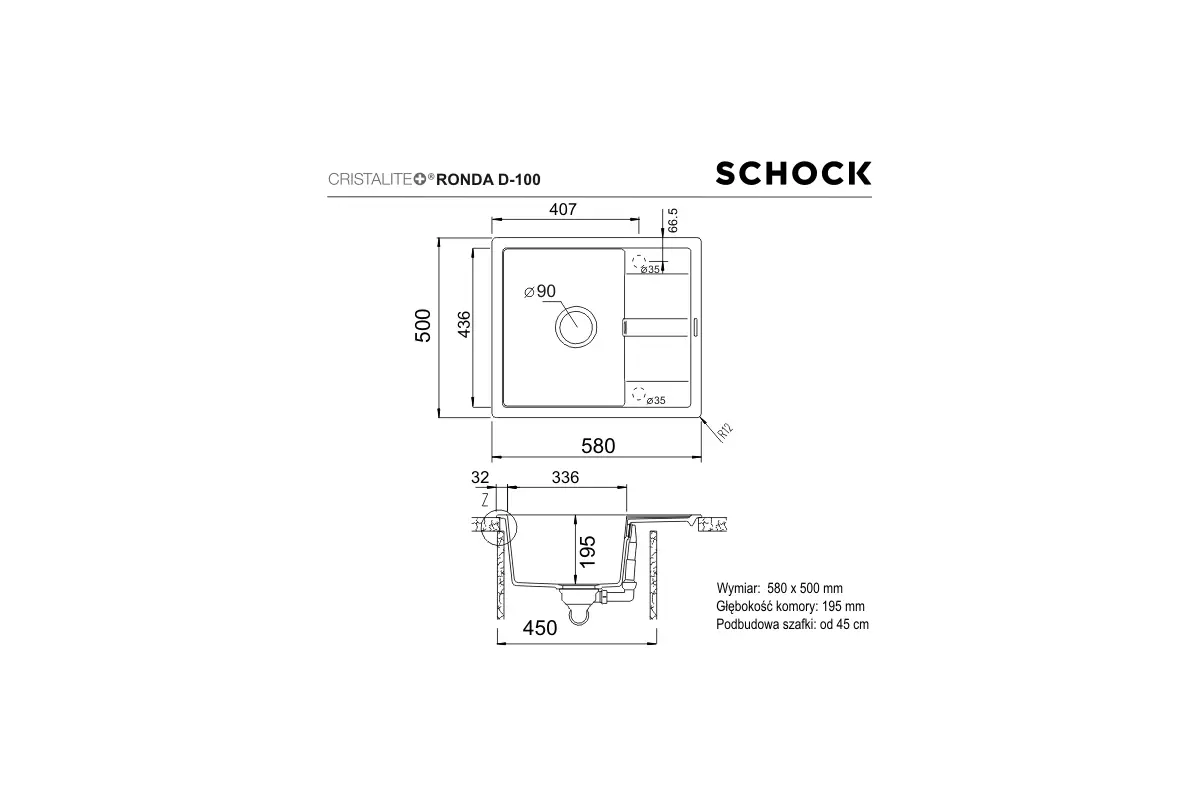 Zlew RONDA D-100 marki Schock o minimalistycznym designie świetnie sprawdzi się w każdej kuchni. Jest funkcjonalny i wytrzymały. Zlew wykonany jest z materiały CRISTALITE®, który jest połączeniem kwarcu (80%) i akrylu. Jest on odporny na zarysowania i uszkodzenia. Bezpieczny dla żywności. jest również łatwy w utrzymaniu, szybko się go czyści. Zlew jest odporny na temperaturę.