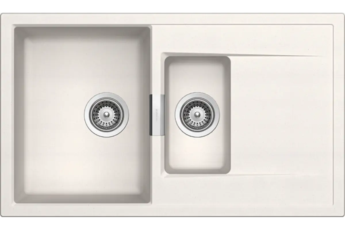 Praktyczny, półtorakomorowy zlew marki Schock wykonany jest z Cristaduru. Proste kształty i klasyczny design świetnie pasują do każdego wystroju kuchni. Mała komora pozwala na wygodne mycie warzyw i owoców lub rozmrażania żywności.