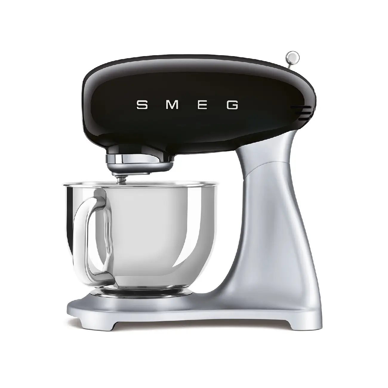 Mikser Smeg pracuje w oparciu o planetarny ruch głowicy roboczej, której prędkość można płynnie dopasować do aktualnych potrzeb dzięki wygodnemu pokrętłu. Stylowy robot kuchenny stworzony został z myślą o bezpieczeństwie i prostocie obsługi. Port akcesoriów pozwala na podłączenie mieszadeł jednym ruchem, bez korzystania z żadnych dodatkowych narzędzi. Wygodnie podnoszona i opuszczana głowica pozwala łatwo uporać się z tym zadaniem – specjalny bezpiecznik nie pozwoli jednak uruchomić silnika, kiedy korpus znajduje się w pozycji uniesionej. Dodatkowo robot kuchenny Smeg Retro 50’s posiada zabezpieczenie przeciążeniowe, które chroni silnik urządzenia przed przegrzaniem lub uszkodzeniem.