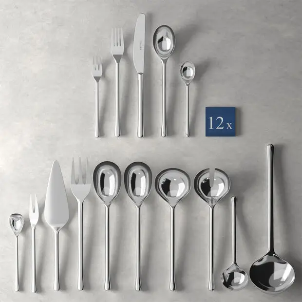 Komplet sztućców dla 12 osób w ilości 70 elementów z linii Udine firmy Villeroy & Boch to część kolekcji, w której romantyczny design sztućców ładnie prezentuje się na zastawionym stole.