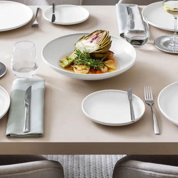Kolekcja Afina wyróżnia się unikalnym projektem, który harmonizuje minimalistyczne formy z precyzyjnie opracowanymi, delikatnymi detalami. Wyraźnie zdefiniowane kontury sprawnie łączą się z misternymi zdobieniami, tworząc nowoczesne naczynia coupé z podniesioną krawędzią.