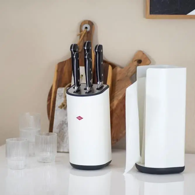 Zestaw 5 noży w bloku z serii Loft od WESCO to elegancki i funkcjonalny zestaw narzędzi kuchennych, który z pewnością przyciągnie uwagę każdego miłośnika gotowania. Produkt ten łączy w sobie nowoczesny design, wysoką jakość wykonania oraz praktyczność, co czyni go idealnym dodatkiem do każdej kuchni. Blok jest stabilny i lekko pochylony do przodu, dzięki czemu można łatwo wyjąć noże.