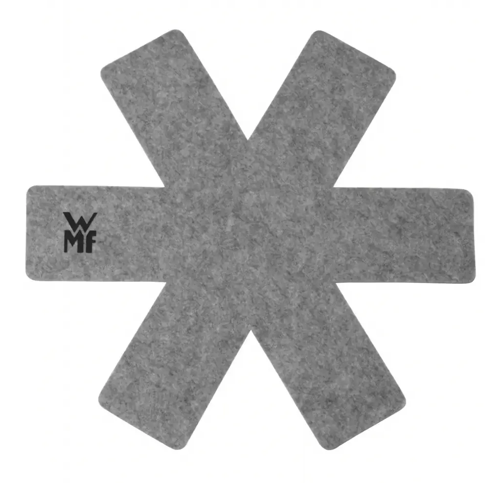 Niemiecka renomowana marka WMF to producent z wieloletnim doświadczeniem, oferujący szeroki asortyment produktów cechujących się wysoką jakością i wykonaniem z dbałością o każdy detal. Wiele z nich można kupić pojedynczo, jednak dostępne są również produkty sprzedawane w zestawach. Prezentowany zestaw zawiera dwie przekładki, mające na celu chronienie dna patelni przed wgnieceniami oraz zarysowaniami podczas ich przechowywania w szafce kuchennej. Pozwoli to przechowywać je w sposób zajmujący mniej miejsca. Przekładki wykonane zostały z filcu i przeznaczone są do naczyń, których średnica dna wynosi maksymalnie 38 cm.